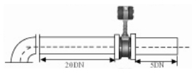 3、彎管的安裝 如果流量計的前端有90°彎頭或T型接頭,要保證流量計的前直管段≥15D,后直管段≥5D |